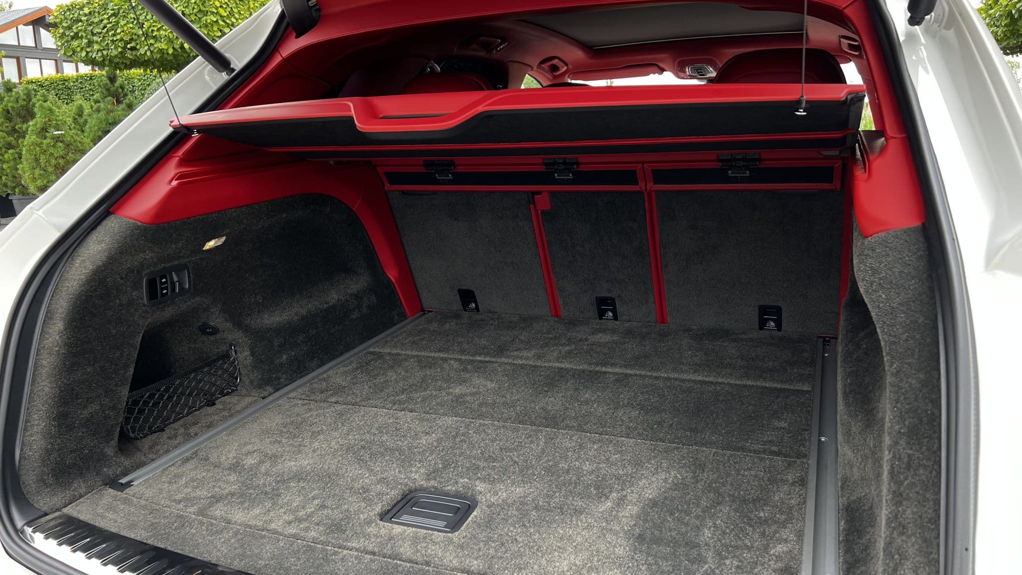 По бокам — чёткие линии кузова, массивные колёсные арки и 22-дюймовые диски, подчёркивающие динамичный характер. Задняя часть с широким бампером, диффузором и двойными патрубками выхлопной системы усиливает впечатление от мощи. Светодиодные фонари с эффектом анимации при включении добавляют технологичности. Камера кругового обзора, датчики парковки и система автоматической парковки помогают управлять автомобилем даже в тесных дворах.