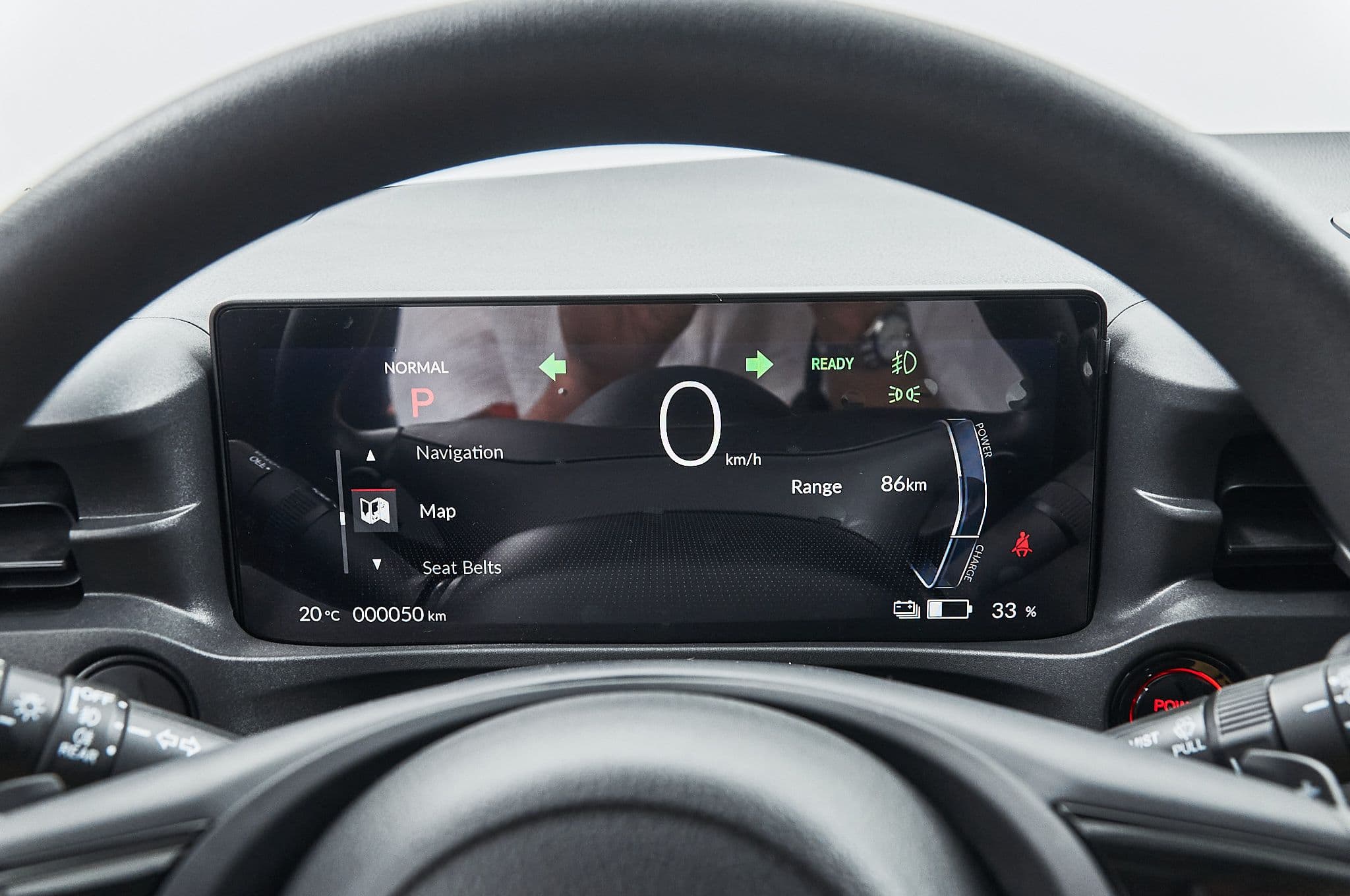 Салон Honda e:NP1 2023 года оформлен в духе минимализма с акцентом на технологии. Центральное место занимает большой сенсорный дисплей, интегрированный в панель приборов, который отображает всю ключевую информацию о состоянии автомобиля, маршруте, заряде батареи и мультимедийных приложениях. Интерфейс отличается интуитивностью и поддерживает подключение смартфонов через Apple CarPlay и Android Auto. Водитель получает доступ к голосовым командам, навигации и потоковым сервисам, не отвлекаясь от дороги.