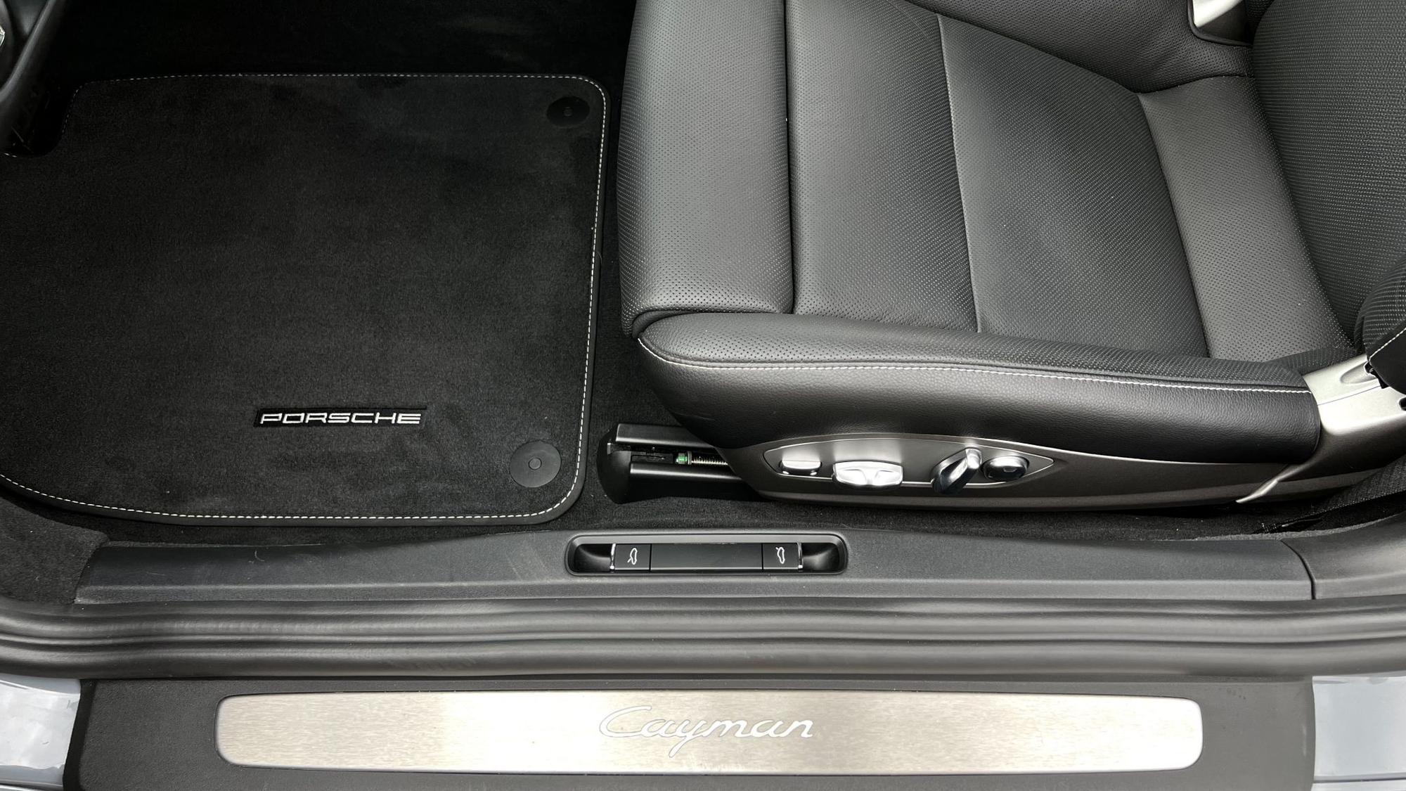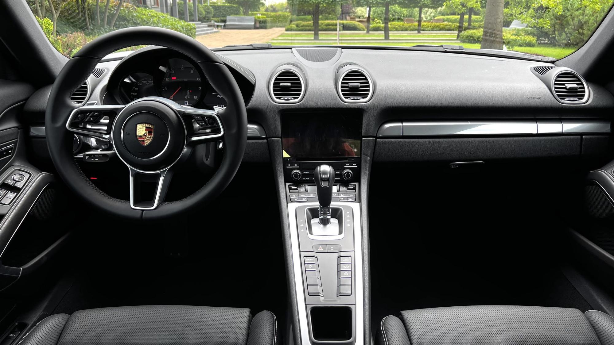 Салон Cayman 2023 года — это пространство, где всё подчинено одной цели: максимальному контролю и удовольствию от вождения. Центральная консоль слегка развернута к водителю, руль имеет уменьшенный диаметр, а все ключевые элементы управления находятся под рукой. Обивка из высококачественной кожи с контрастной чёрной строчкой, алюминиевые накладки на педалях, матовые вставки и мягкие панели создают атмосферу технологичной, но тёплой премиальности.