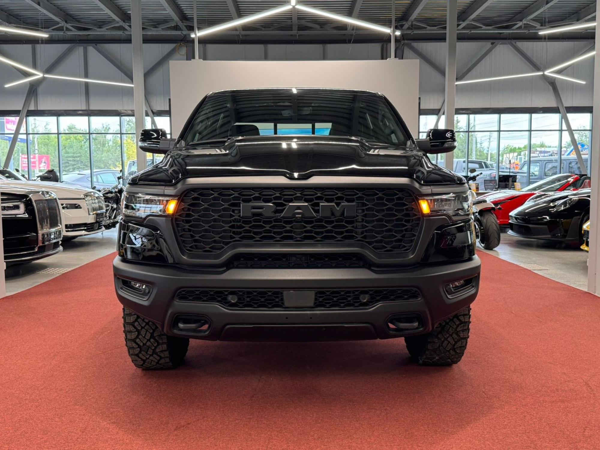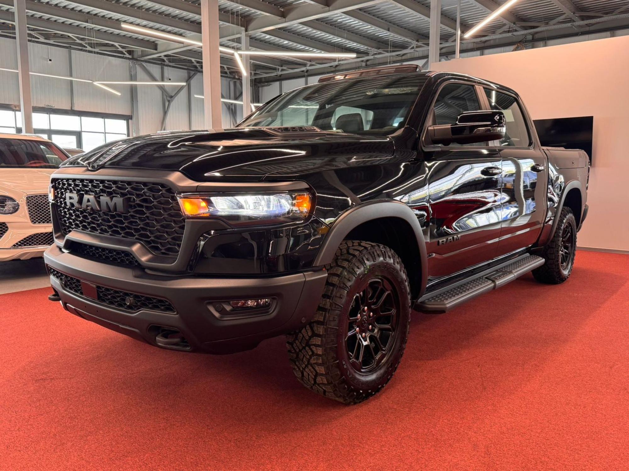 Внешний вид RAM 1500 отражает характер модели — уверенность, мощь и практичность. Крупная решётка радиатора, массивные колёсные арки и характерная светотехника создают выразительный и узнаваемый облик. Тип кузова — пикап, и его пропорции подчёркивают баланс между функциональностью и стилем. Чёрный цвет кузова придаёт автомобилю солидность и универсальность — он одинаково уместен в городе и за его пределами. Дизайн RAM 1500 не стремится к показной агрессии, а демонстрирует уверенную силу и устойчивость.