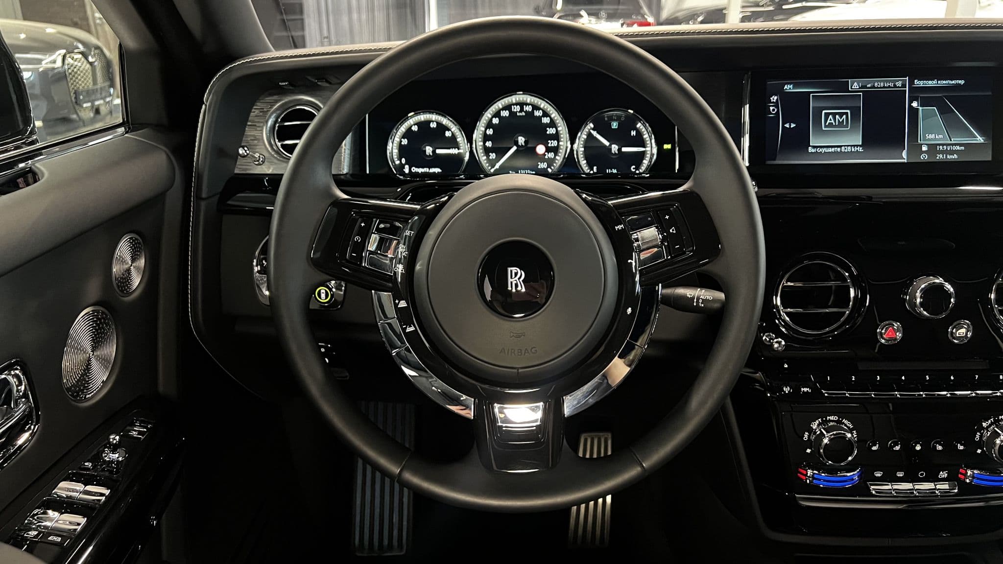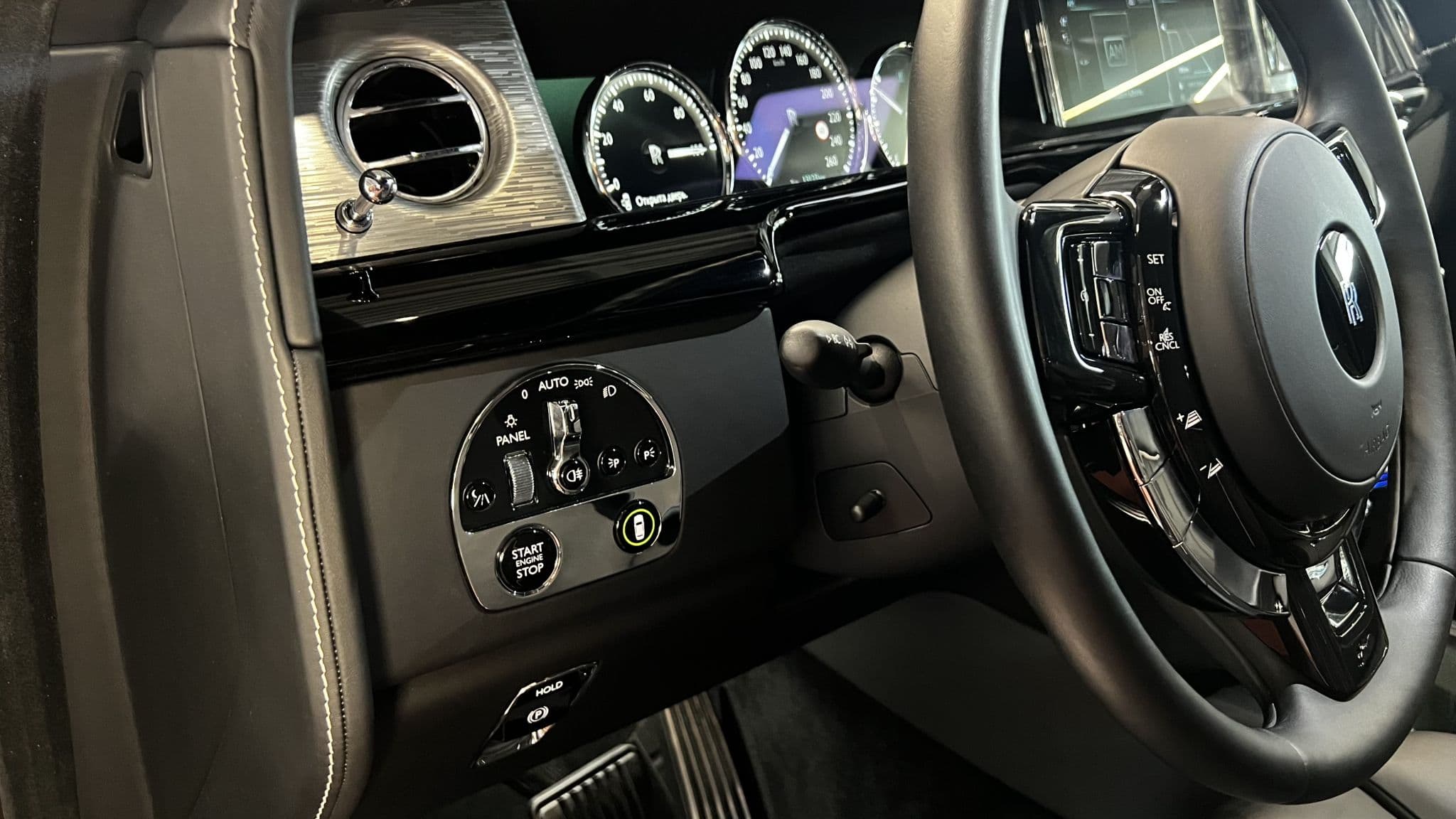 Открывая дверь Phantom, вы попадаете в пространство, где каждый элемент создан вручную. Интерьер — это полотно из лучшей кожи, натурального дерева и металлических вставок, собранных мастерами с десятилетним стажем. Панель приборов, облицованная массивом ореха с индивидуальным рисунком, продолжает традицию Rolls-Royce — использовать только уникальные породы дерева, подходящие друг к другу по текстуре и оттенку.