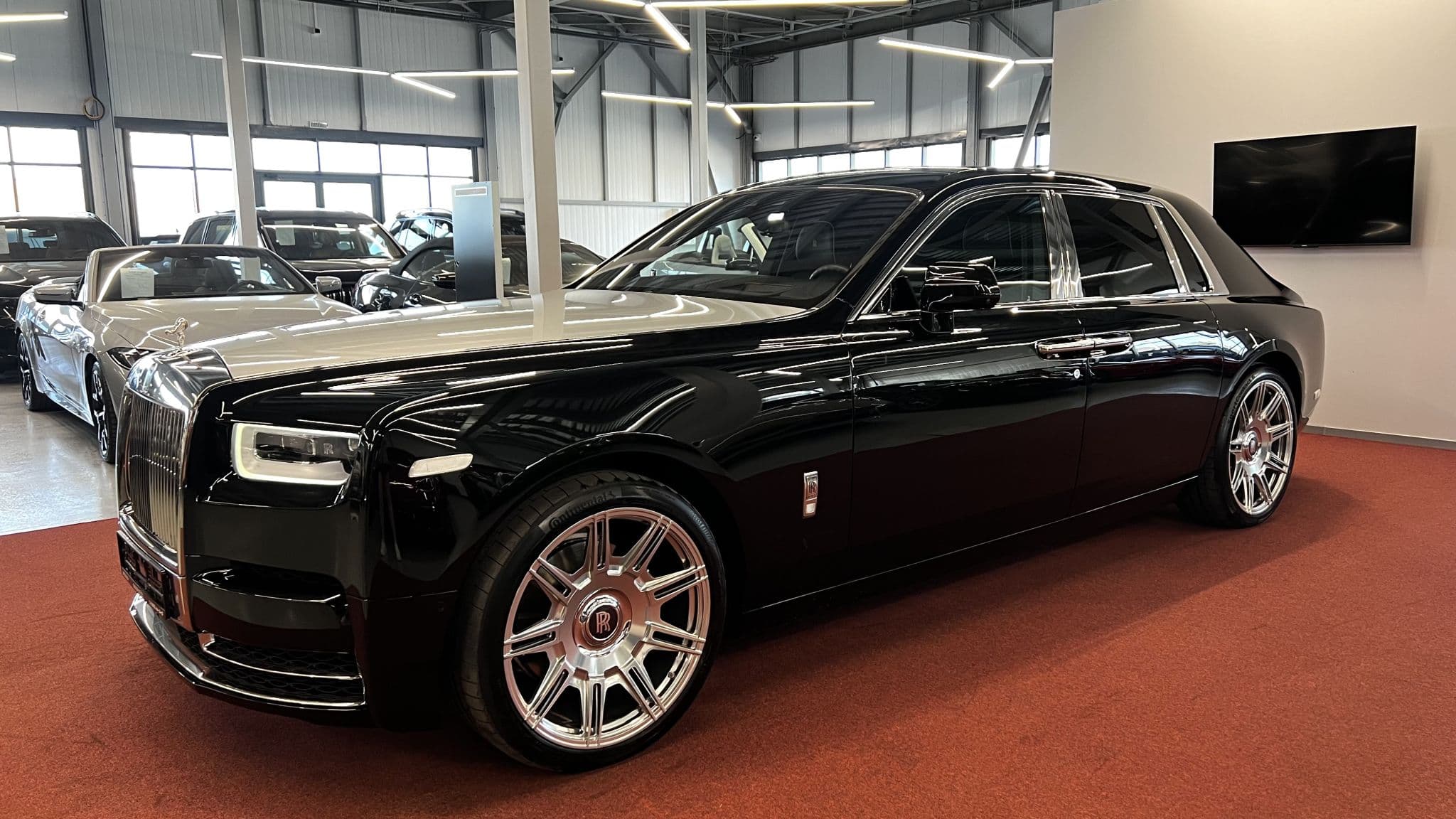 Phantom VIII — это современная интерпретация легендарного силуэта, существующего более полувека. Его массивный, но сбалансированный профиль, высокая посадка, огромная решётка радиатора с подсветкой и знаменитая статуэтка «Дух экстаза» создают ощущение непоколебимой мощи и достоинства. Черный цвет кузова придаёт автомобилю торжественность и сдержанную элегантность, делая его идеальным выбором для тех, кто ценит утончённость без излишнего пафоса.