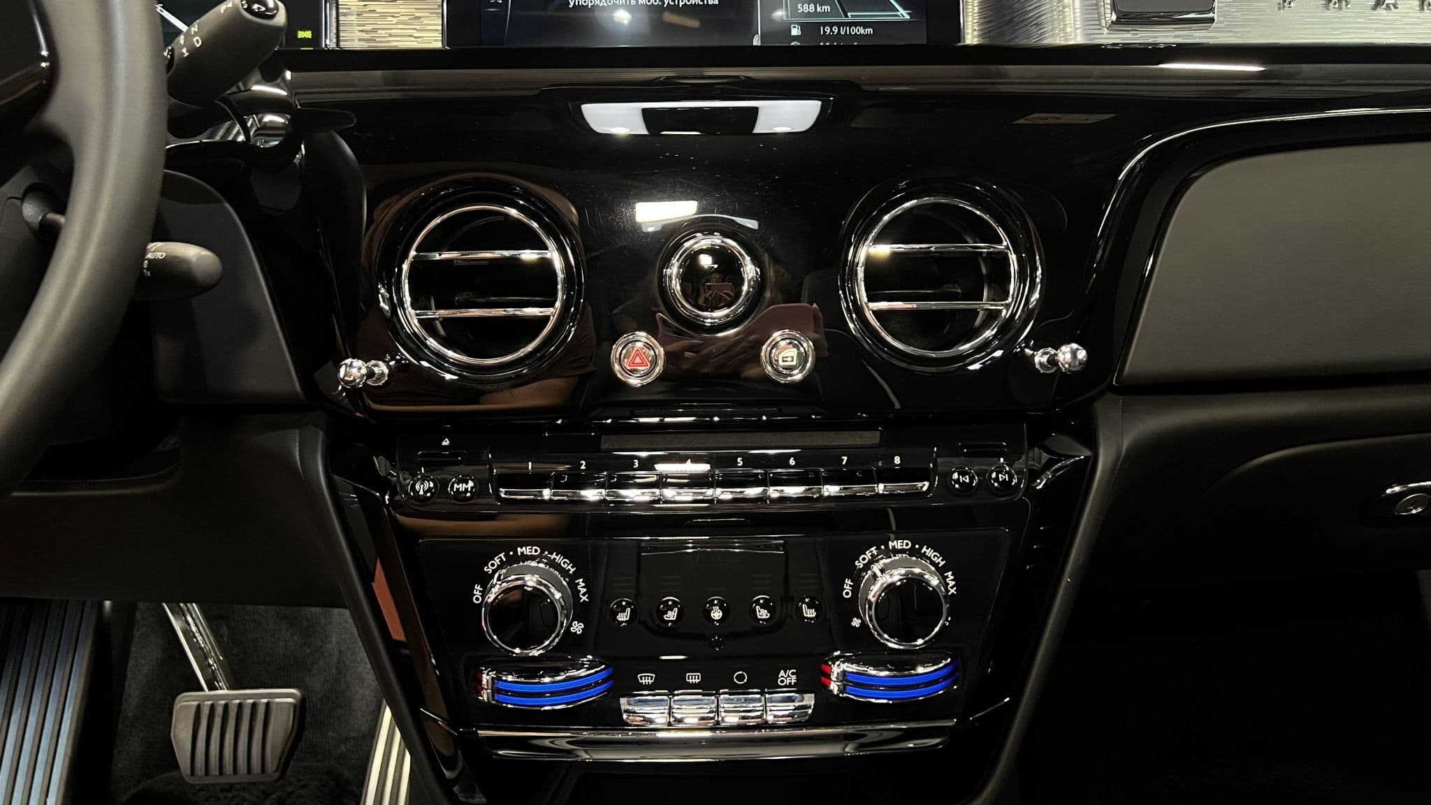 Задние сиденья — это отдельная вселенная комфорта. Места здесь больше, чем в большинстве лимузинов: просторные кресла с электрорегулировками, массажем, подогревом и вентиляцией, откидные столики, раздельный климат-контроль и шторки на окнах создают атмосферу частного салона. Потолок с подсветкой «звёздное небо» — фирменная опция бренда — превращает поездку в ночной поезд в облаках, где тишина нарушается только лёгким шелестом шин по асфальту.