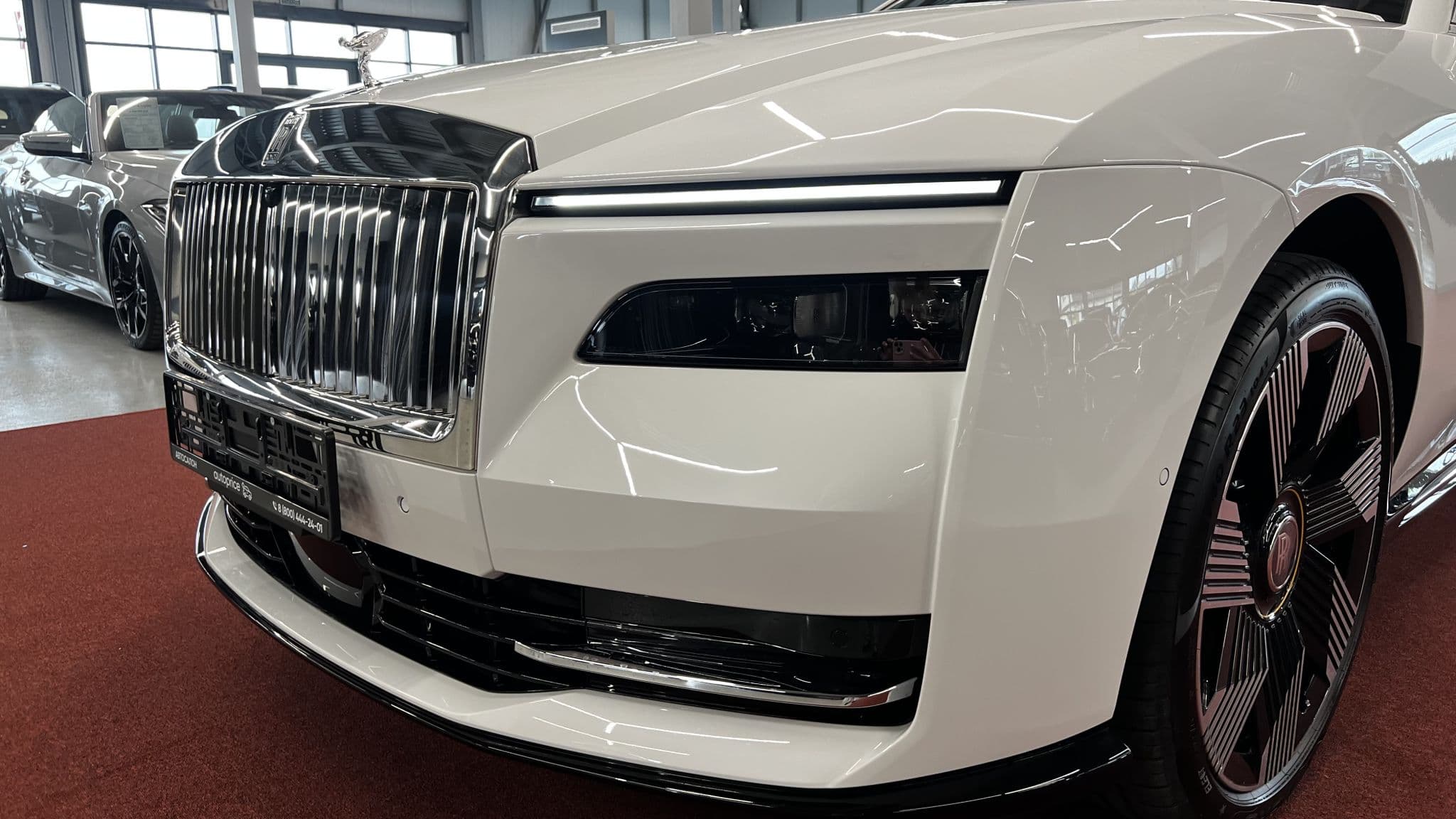 Особое внимание уделено деталям: светодиодные фары с фирменным «глазом ангела», скрытые ручки дверей, плавные переходы кузовных панелей и, конечно, знаменитая статуэтка «Дух экстаза» на капоте, теперь также оснащённая подсветкой. Каждый элемент дизайна продуман до мельчайших нюансов, чтобы подчеркнуть уникальность и индивидуальность владельца.